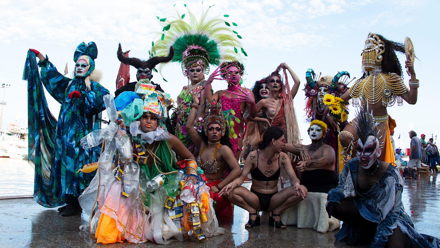 ão é um dia comum no mercado Ver-o-Peso, em Belém do Pará. Em seus quase 400 anos de história, o entreposto comercial a céu aberto recebe uma intervenção artística feroz. O coletivo de artistas drags Thêmonias transita por entre as barracas enquanto têm sua performance registrada em vídeo. O filme, que registra olhares curiosos, admiradores, repulsivos, faz parte de uma série de filmes comissionados pelo Instituto Moreira Salles através da artista Rafael BQueer.